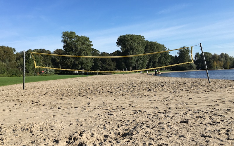 Foto: Strand KralingseplasStrandje aan de westkant van de Kralingseplas, in de wijk Kralingen, met 1 vast beachveld, vrij te gebruiken; indien niet te druk is er ook ruimte voor eigen beachvelden.